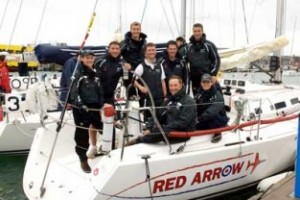 The RAF sailing team racing J/109 Red Arrow win the day at Cowes
