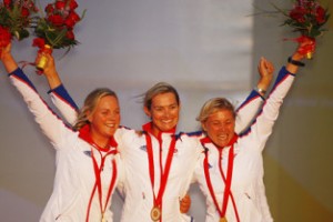 British Yngling girls take Britain’s first sailing Gold of the Games.