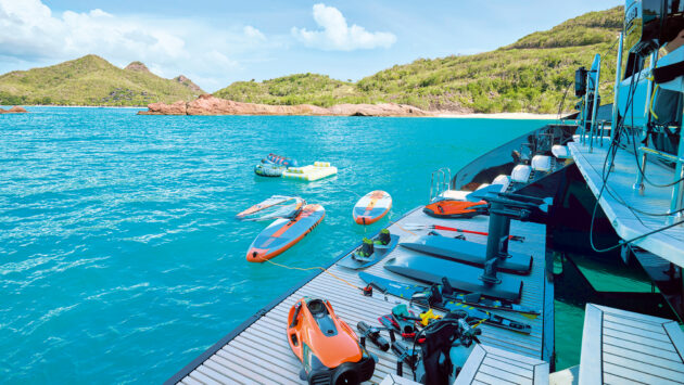The Sunreef also carries a vast array of water toys, including an inflatable sailing dinghy, two Seabobs, an efoil, four SUPS – with windsurfing rigs, tow toys, and even a hydrophone to listen out for marine life from the silent-running yacht. diyachting.co.uk.