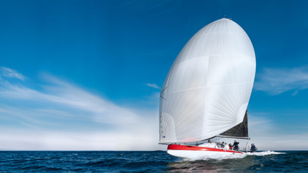 The test boat’s Code 0 is cut and sized to be as fast as possible at true wind angles of 55-60°. Reaching with both this and the J2 set in 15-17 knots of breeze, at a 40° apparent wind angle (70° TWA), we consistently achieved boat speeds of 8.5 to 11 knots. We were therefore effectively planing at times, even with the wind so far forward.