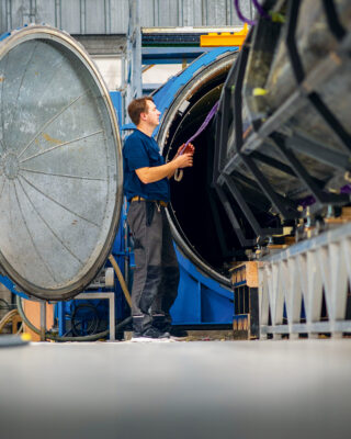 The boat was precision built at CDK Technoloiges in Lorient, with up to 80% made in an autoclave. Photo: G Le Corre/polaRYSE/Gitana SA