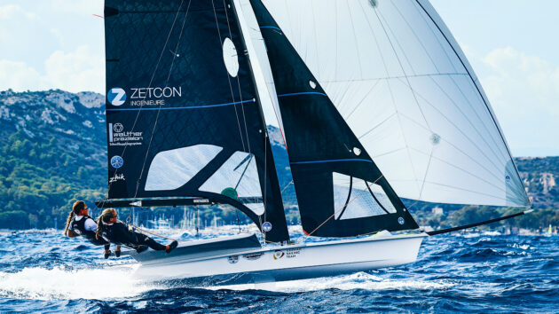 The 49er was introduced as a women’s skiff class, with the FX rig giving lighter crews a shorter mast and reduced sail plan on the 49er platform.